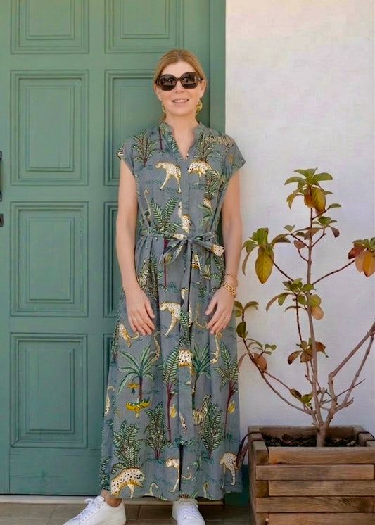 Kiara Cotton Dress | Grey Jungle