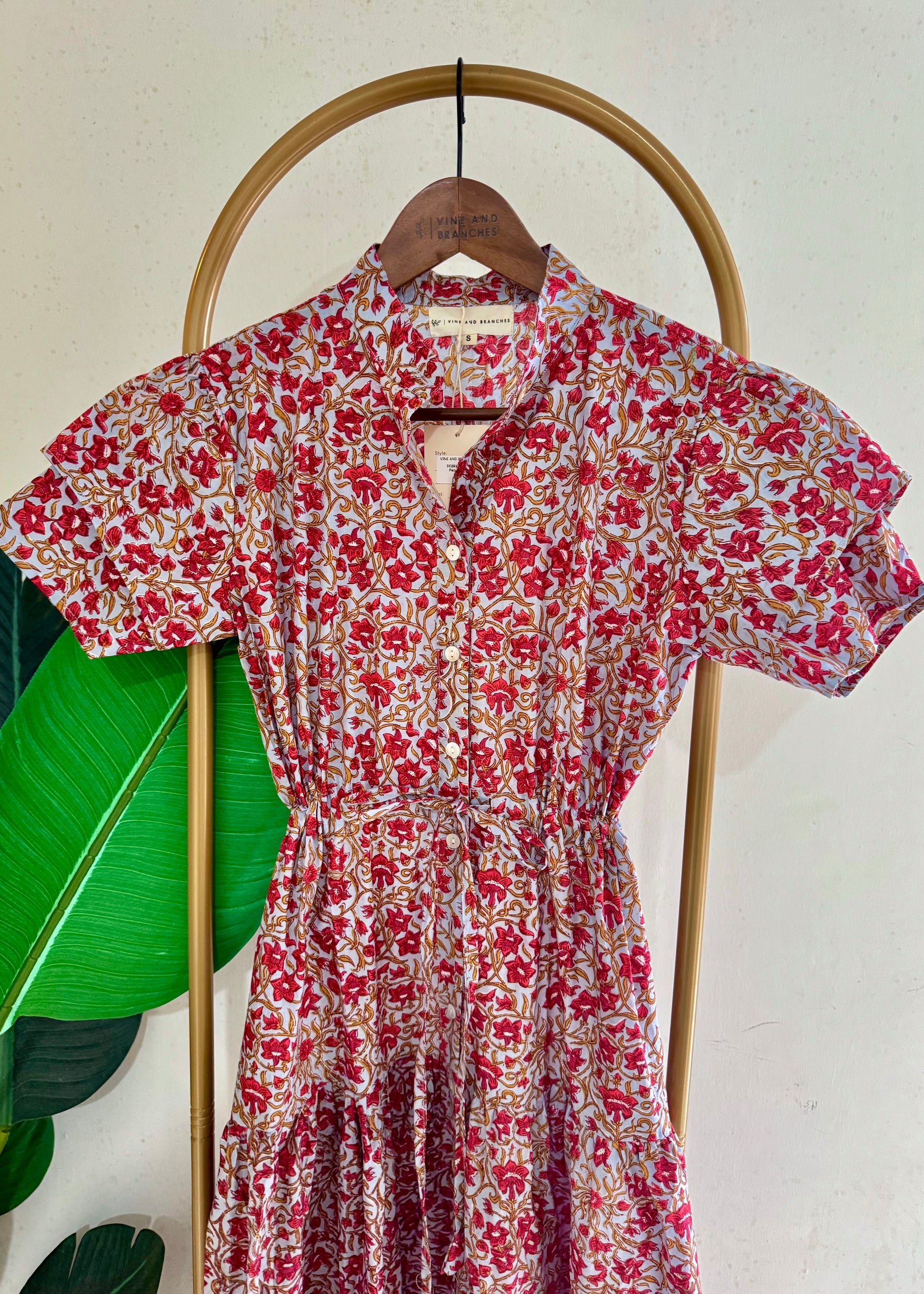 Please note: The fabric used to create this dress is completely hand printed and some inconsistency in color and print may occur. We attribute this to the beauty of hand printing which lends to the exclusivity of the product.