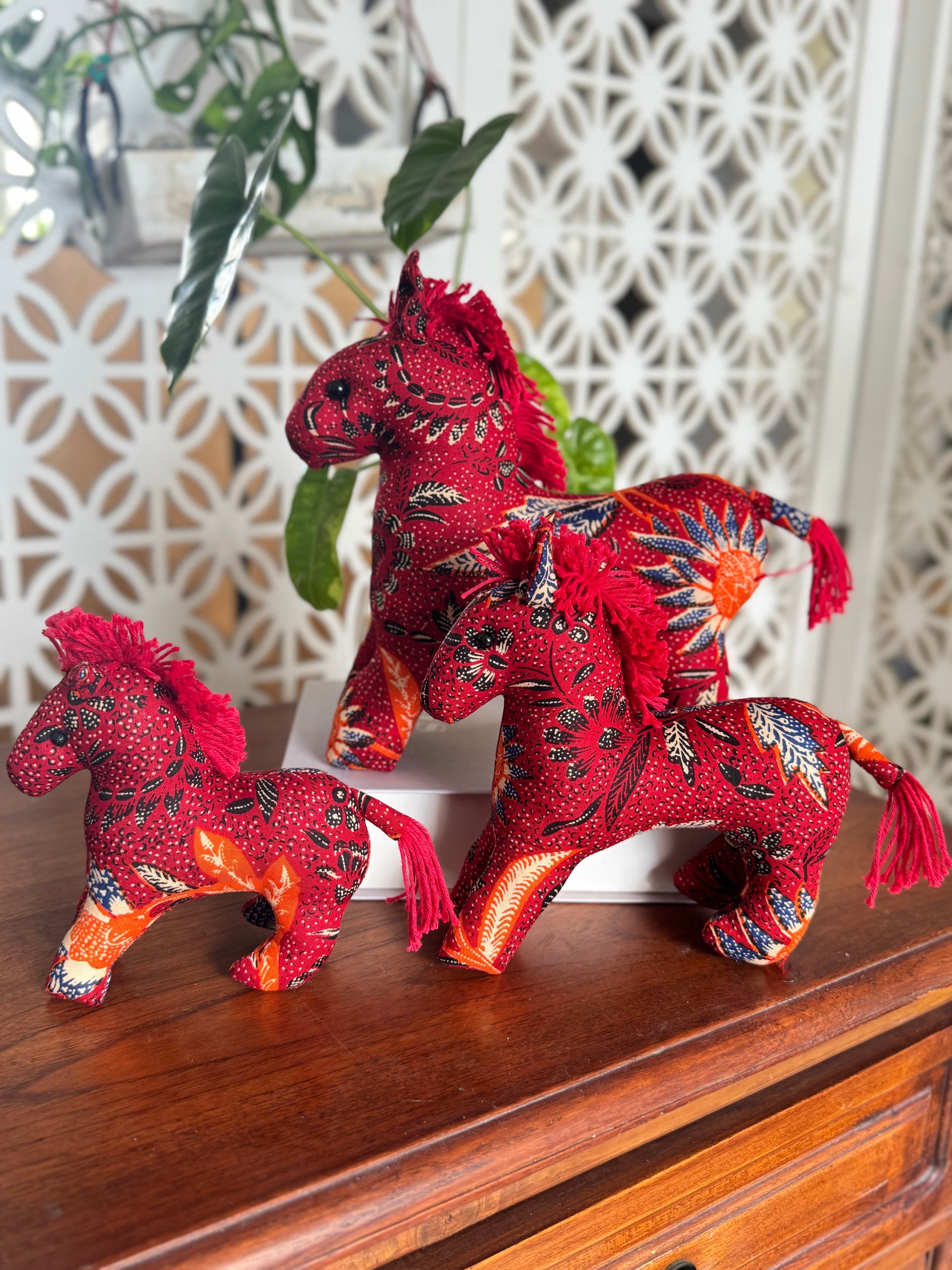 SET OF 3 : HORSE CNY ORNAMENT- Batik Red Orange