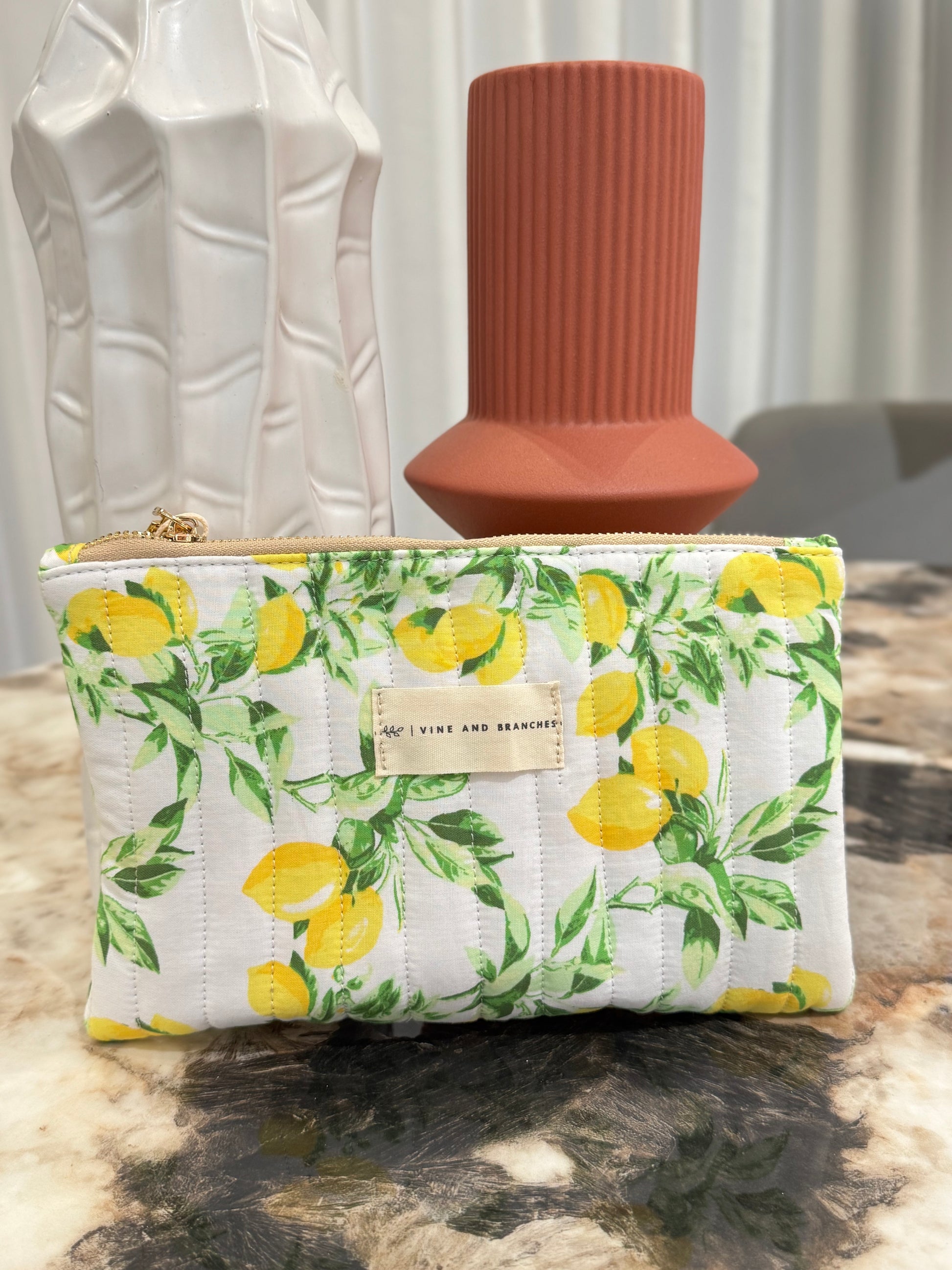 Flat Quilted Japanese Cotton Pouch - Fruity Lemon