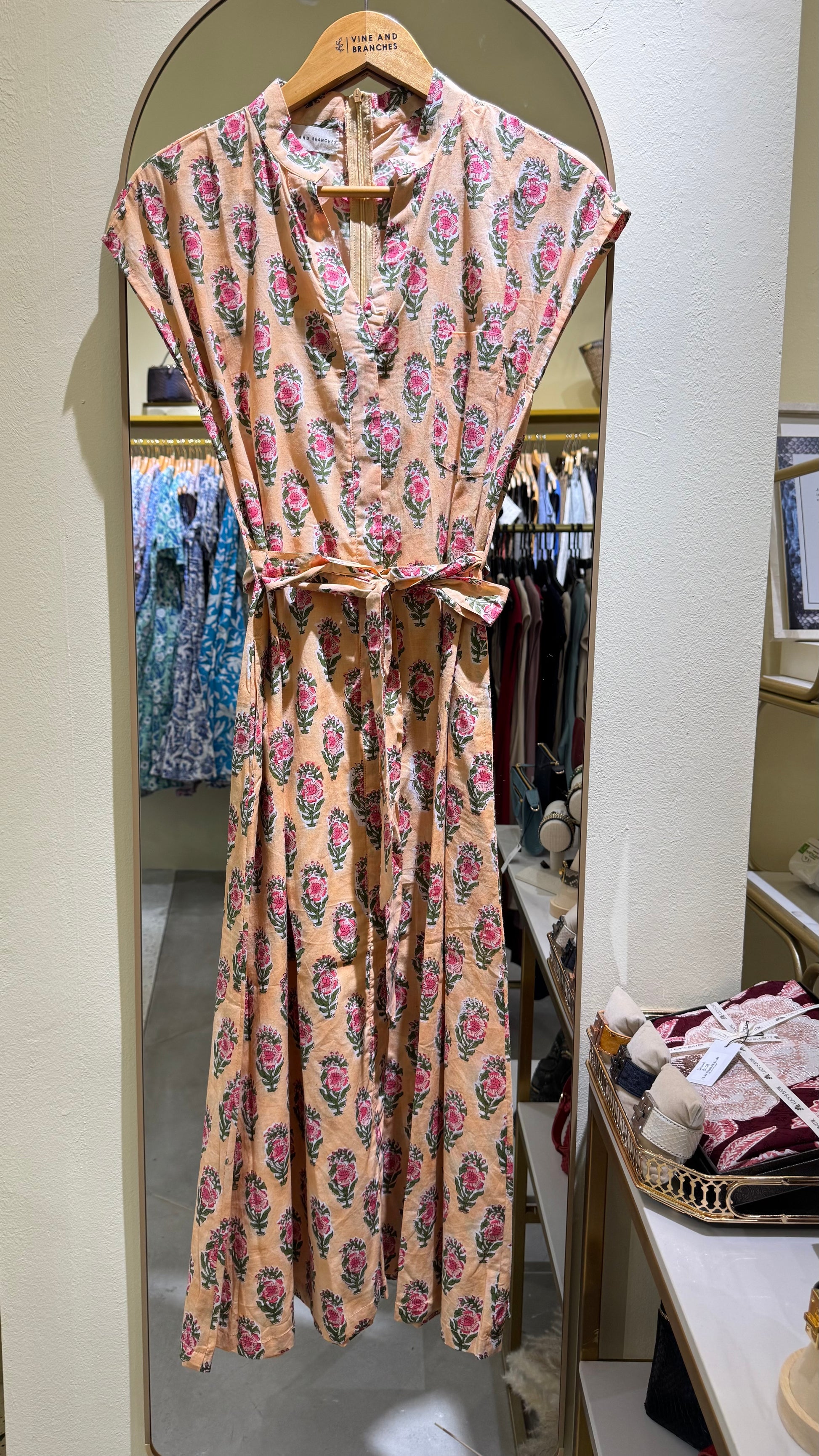 Please note: The fabric used to create this dress is completely hand printed and some inconsistency in color and print may occur. We attribute this to the beauty of hand printing which lends to the exclusivity of the product.