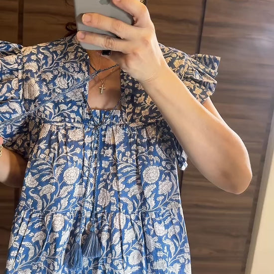 Please note: The fabric used to create this dress is completely hand printed and some inconsistency in color and print may occur. We attribute this to the beauty of hand printing which lends to the exclusivity of the product.